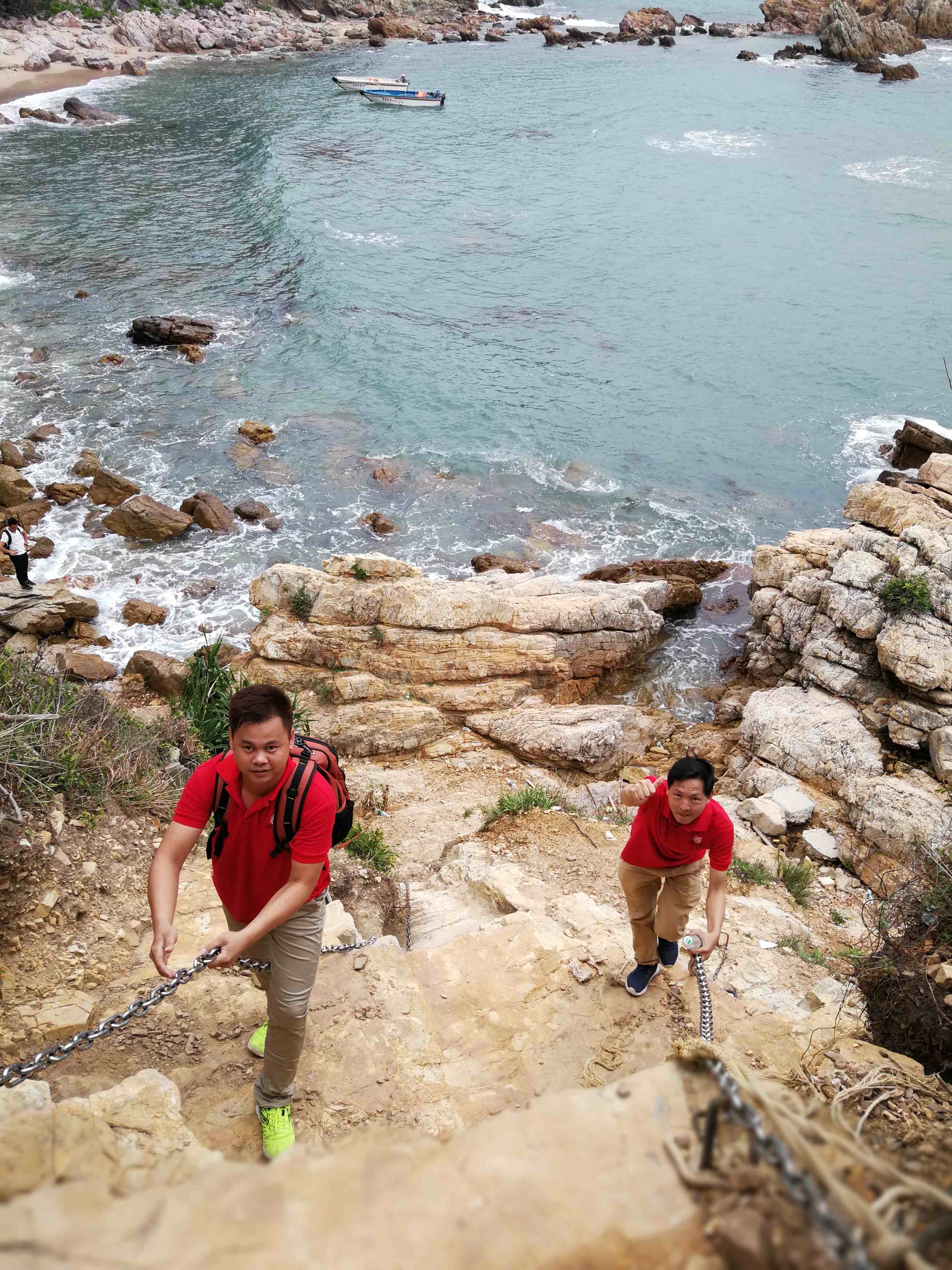 早上8:00集合完毕从公司出发,在专业导游陪同下参与游戏,带着愉悦的心情乘豪华旅游空调车前往东冲,约2小时的车程我们到达东冲海滩,修整准备,10:30在导游的带领下,开始穿越沙滩、石滩、岸滩,探险;美丽的海岸线上,站着一个我,一个你,一个他,我们是自由的。眼前的景象从模糊到清晰再到模糊,由小变大,从蓝变白,从远至近,从高而低。所有的只不过是一次瞬间的美丽,用独有的风景包围了你的内心,源于一次旅行,慢慢的感染着我们。以后可以坐下来像似水流年里的场景一样用记忆放大每一处的影像,一切仿如昨天。