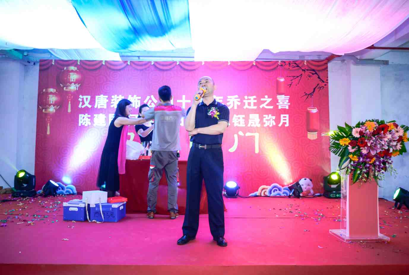 接下来,特约嘉宾和领导纷纷上台致贺词,祝愿汉唐建设集团能不断创新、勇创佳绩。