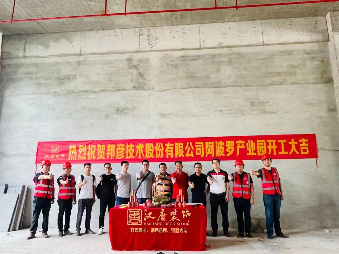 2021年8月12日是一个欢聚的时刻,是一个播种梦想,收获希望的日子,汉唐建设集团项目部工地现场彩旗飘飘、花团锦簇,位于深圳市龙岗区阿波罗工业园的邦彦技术股份有限公司装修项目在今天举行了盛大的工程开工仪式。邦彦技术股份有限公司相关领导、深圳汉唐建设集团负责人、工程经理、项目经理及采购经理共同出席了本次开工仪式,共同见证这一历史性的时刻。