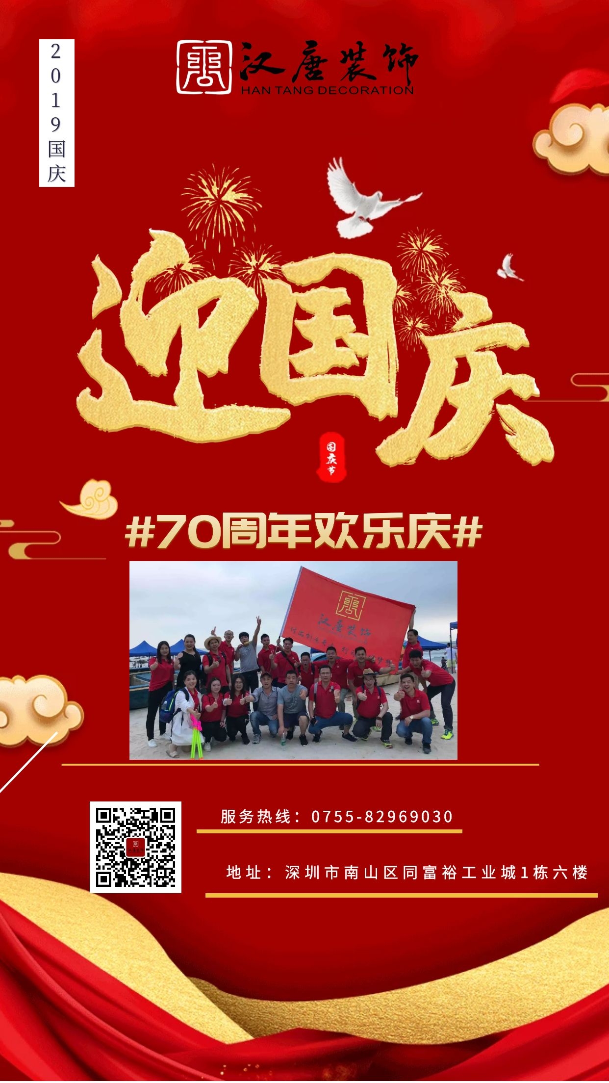 不知不觉,我们迎来了新中国的七十华诞,几十年的风风雨雨共同谱成了一支新中国的赞歌。在这普天同庆的日子里,汉唐建设将最真挚的祝福送给大家,愿大家生活幸福,与我们的祖国一起蒸蒸日上!