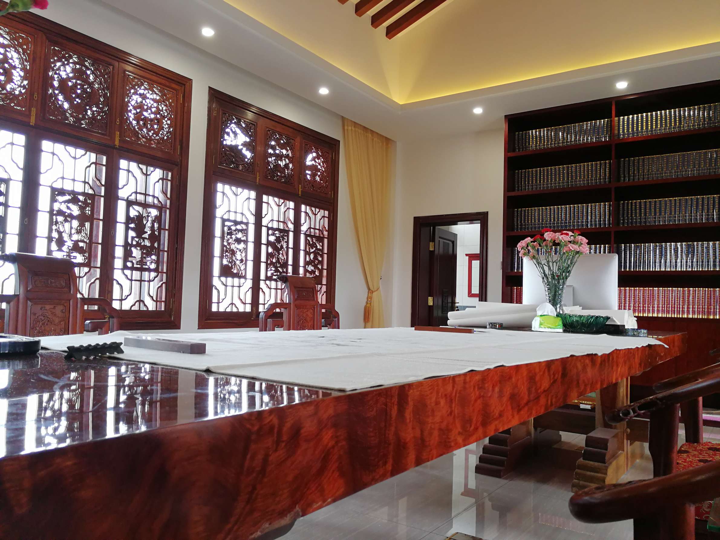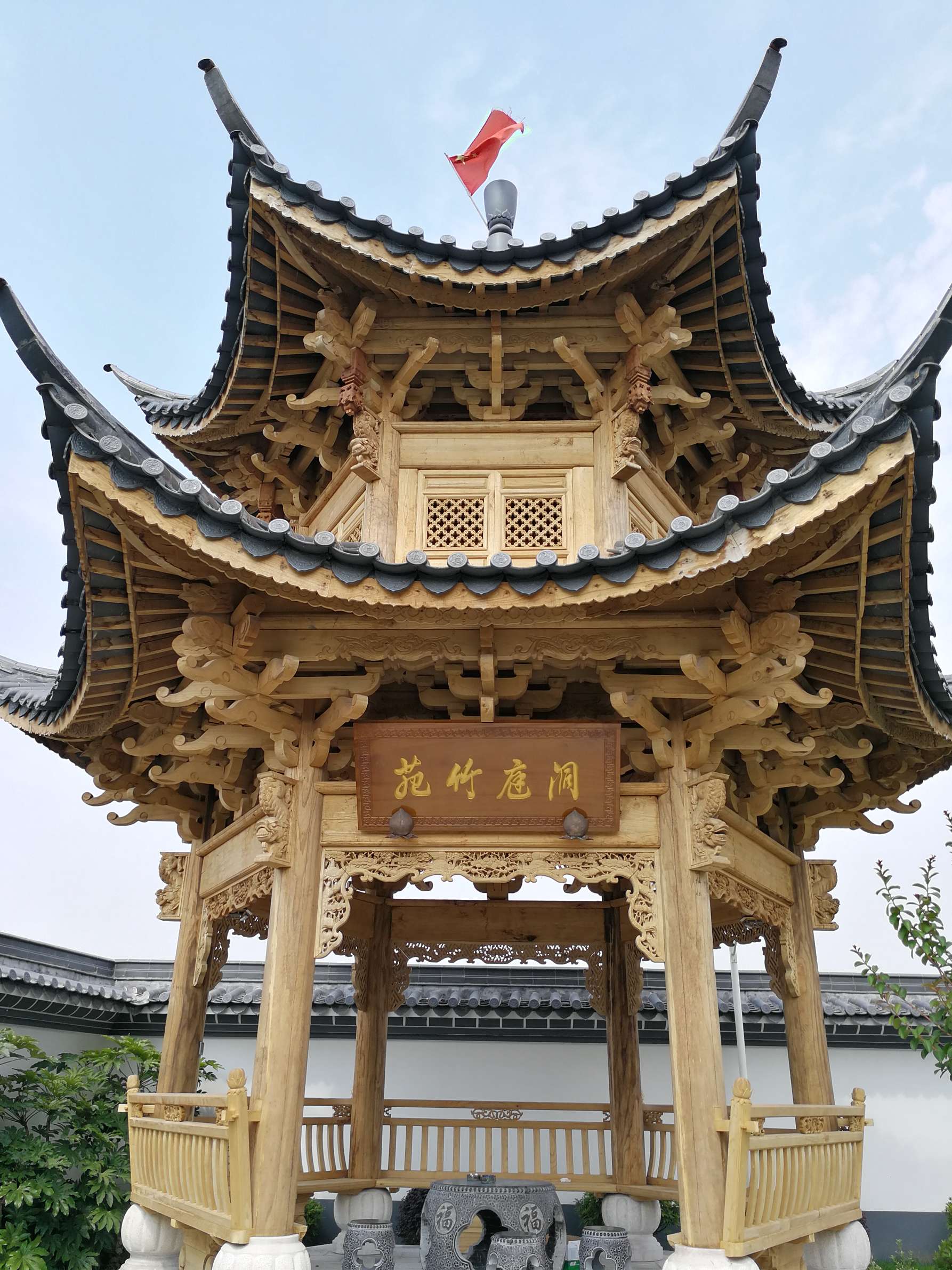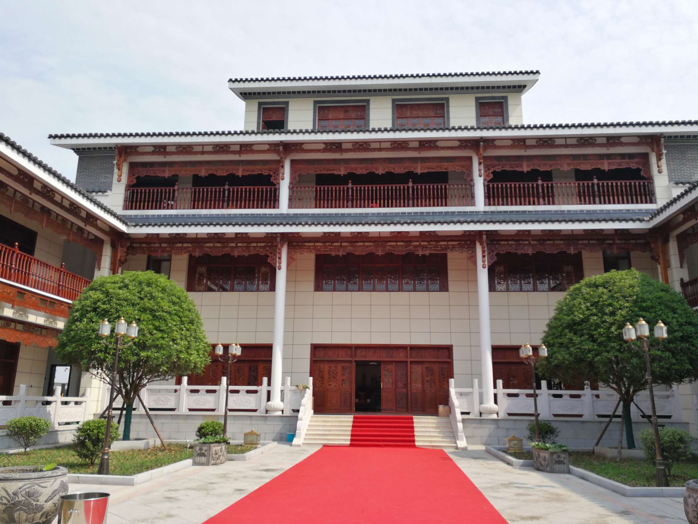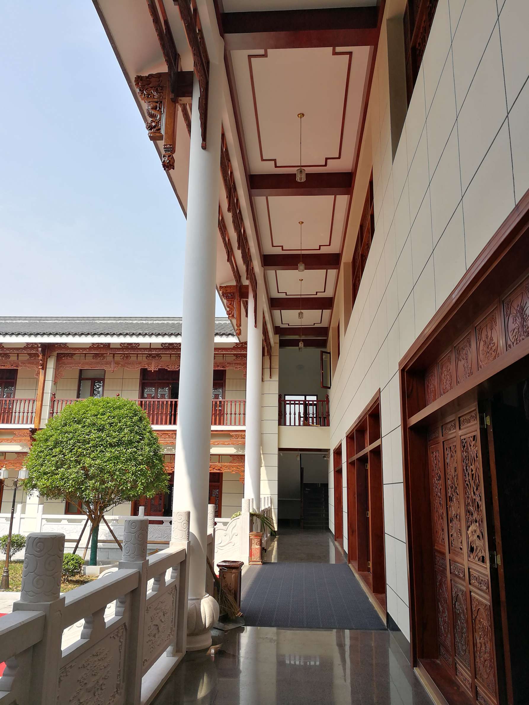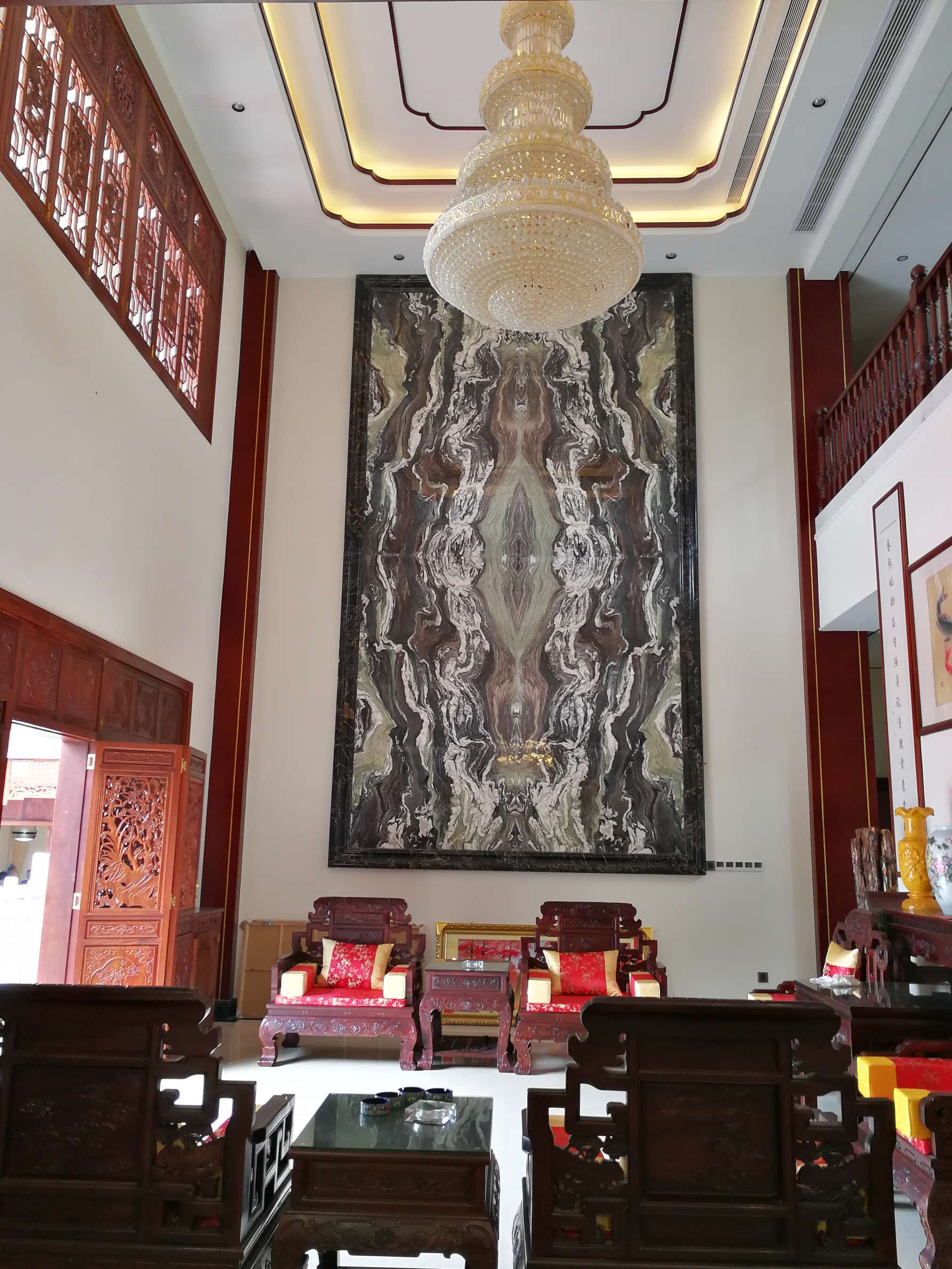 主要装饰材料:饰面板、仿古砖、花梨木、大理石、实木雕花、户外麻石
