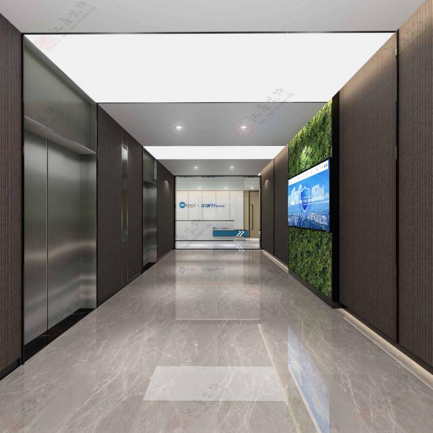 除上述常见的办公墙效果外,玻璃饰面、木饰面、金属饰面等装饰材料的应用也占很大比例。