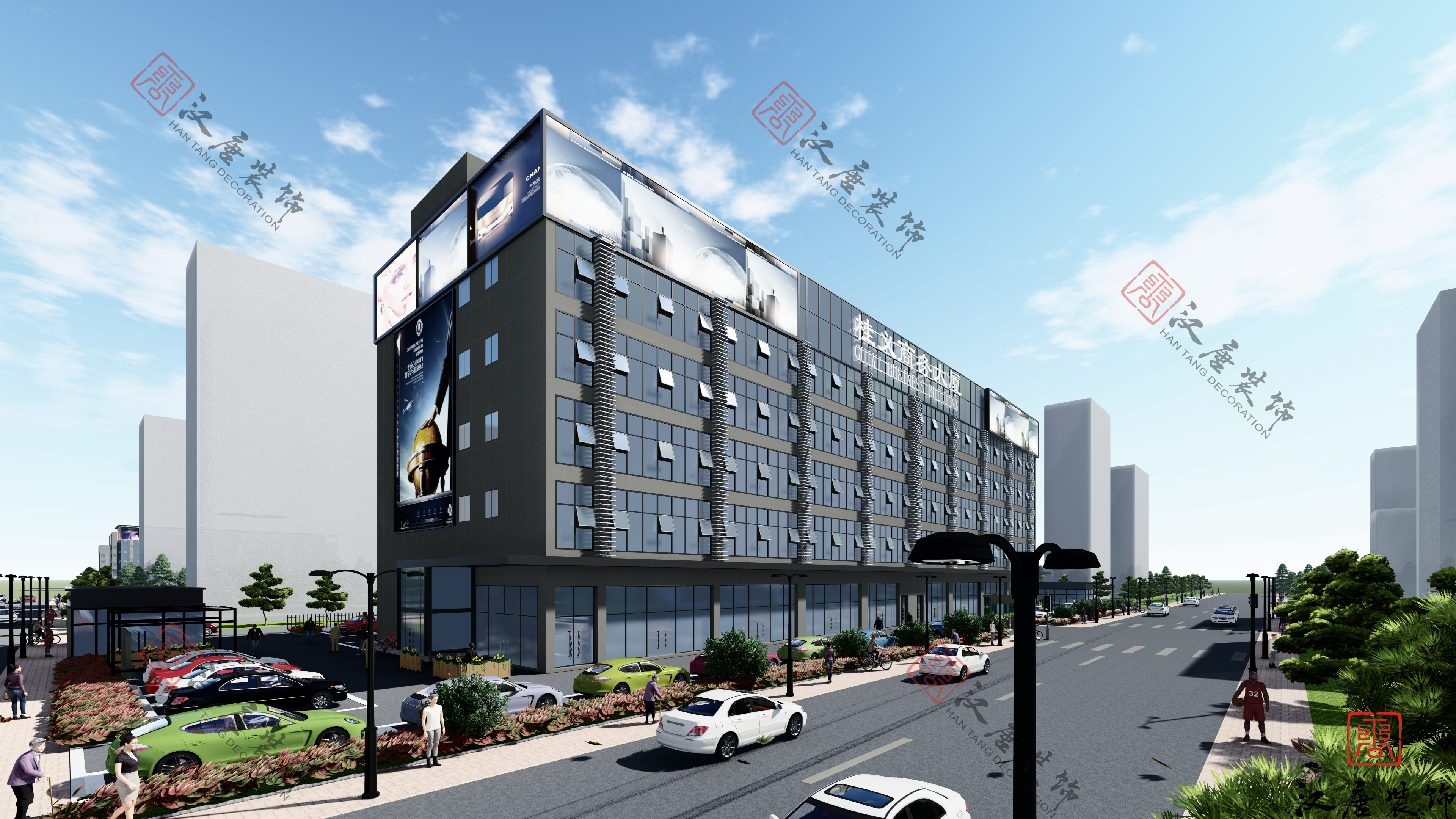 大厦正面及两侧顶部商业展示规划,采用静态画面时楼体建筑如同空间的静止画卷,若采用动态多媒体时则展现无尽可能。