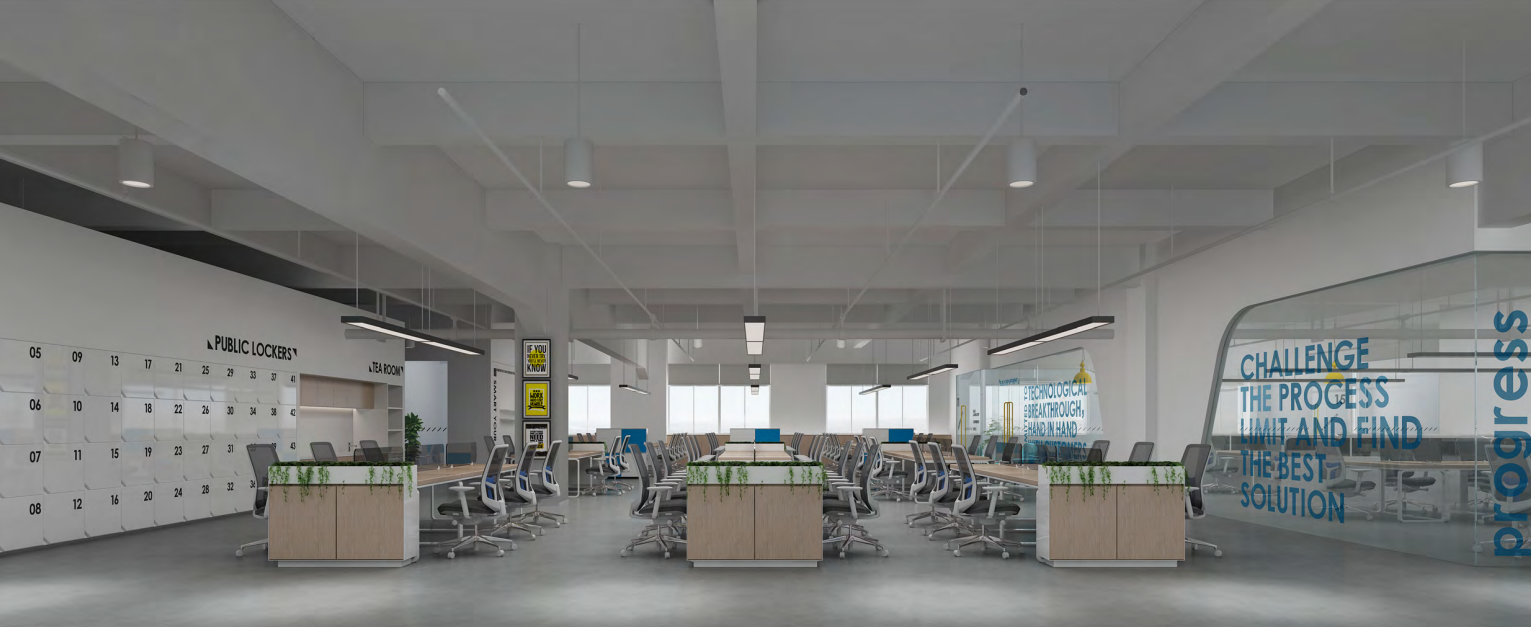 通过丰富而多元的场景设置——正式和非正式空间的巧妙融合,结合丰富的几何语言,重新解构、重组现代办公空间,不仅满足客户的所有功能需求,也呈现出一个极具视觉冲击力和富于创意文化的协作型工作环境。