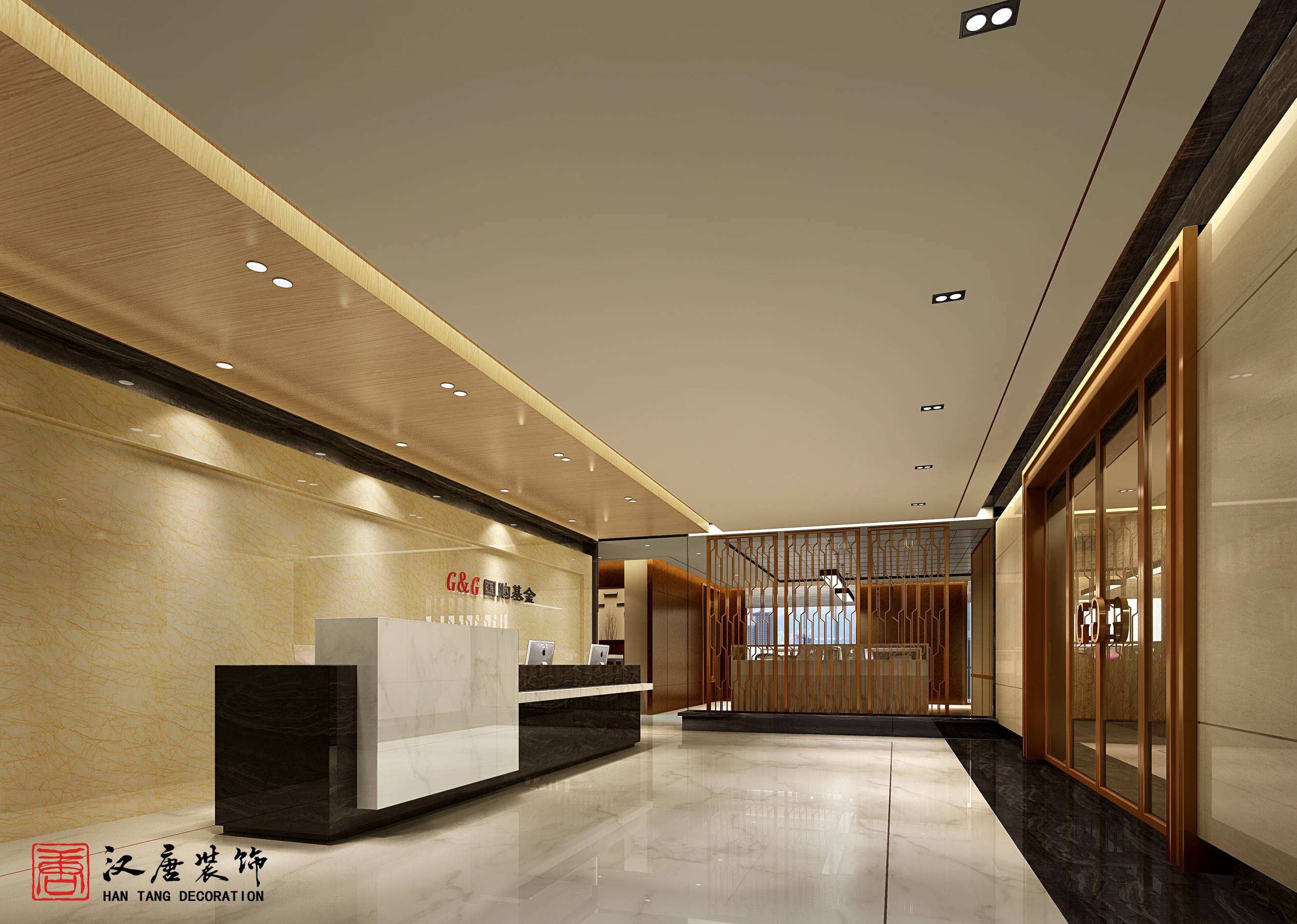 设计一个符合金融基金装饰规范,风格统一、具有现代中式形式感强,并能展现其公司特点和实力的方案,有较强的大众亲合力以及以人为本的经营理念。设计风格:标准化、系列化、全面统一;明快、雅致、舒适、简洁;功能齐全方便,满足服务对象的个性化要求,拉近同客户的距离;更加突出良好的公众形象;重视灯光和色彩的运用,细节精细,高雅大方;合理选材;总体要求: