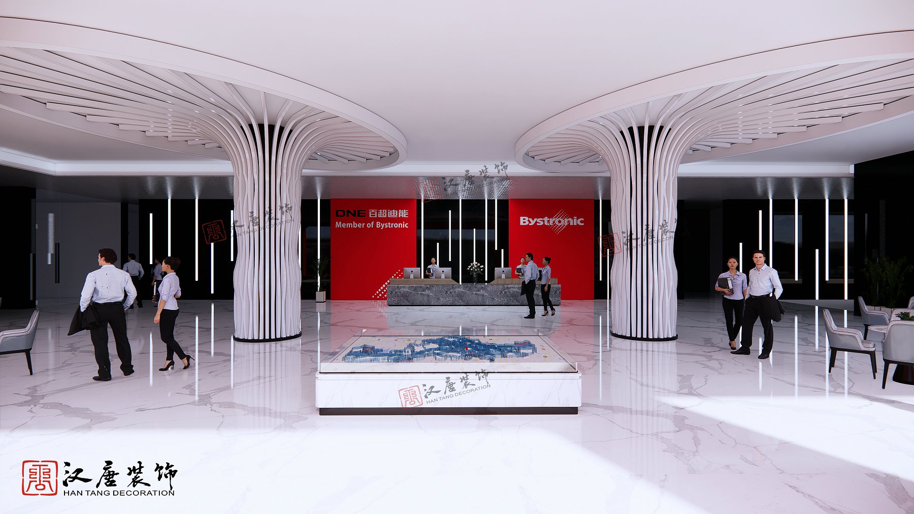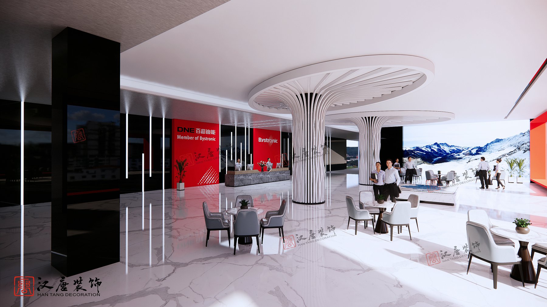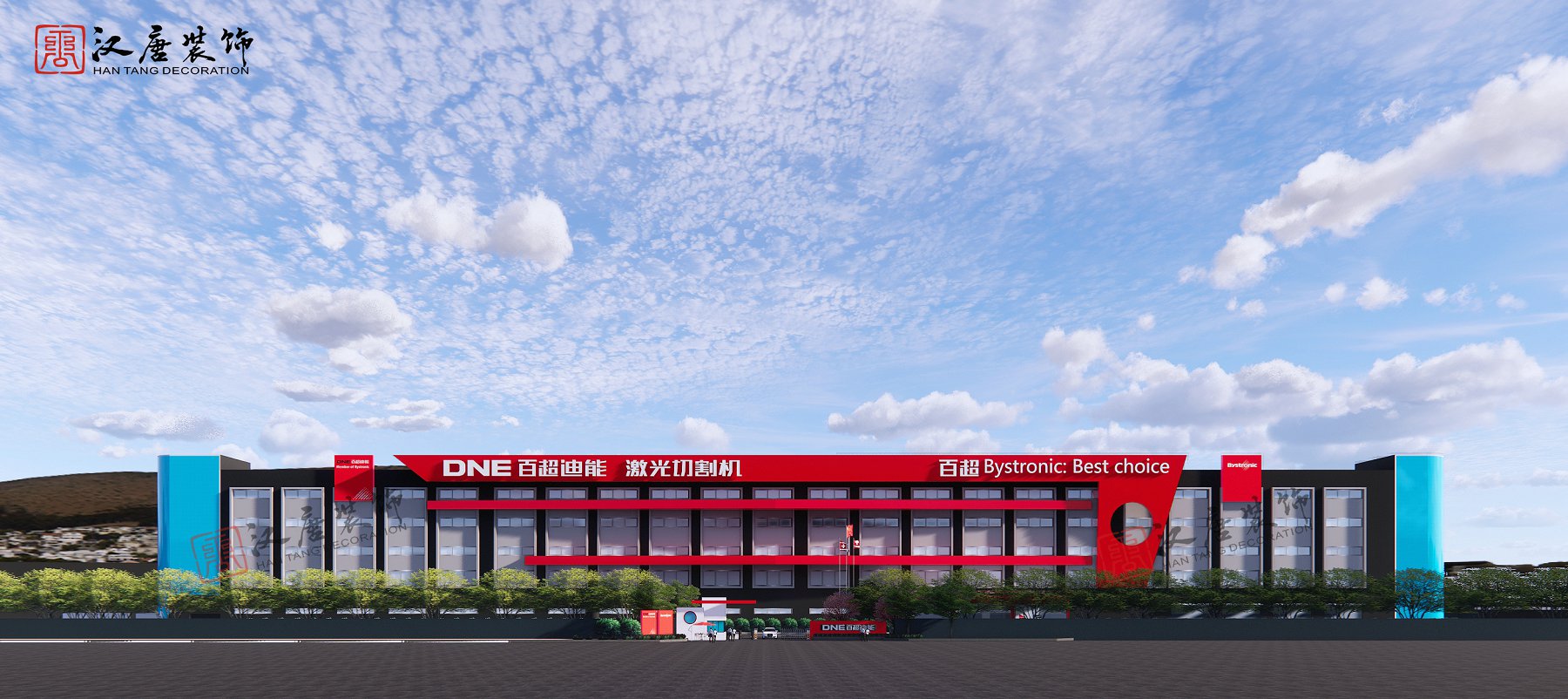 项目名称:深圳市百超迪能激光科技有限公司工业园改造设计工程项目地址:深圳市宝安区沙井街道坣岗社区中日龙路12号 项目总面积:园区总占地3.6万㎡,室内面积4万㎡,园林整体规划,外观升级设计说明:本方案的业态为激光科技类公司,为瑞士合资企业,甲方诉求需要设计国际化、现代简约、有科技感,根据企业色,外观主色调为深黑色,配色为红色、白色,稳重的同时又不显呆板,展现了企业的活力,展厅空间设计科技感,白色,灰色作为主色调,为企业增色,更好的展示好产品的优点,让企业更具竞争力。