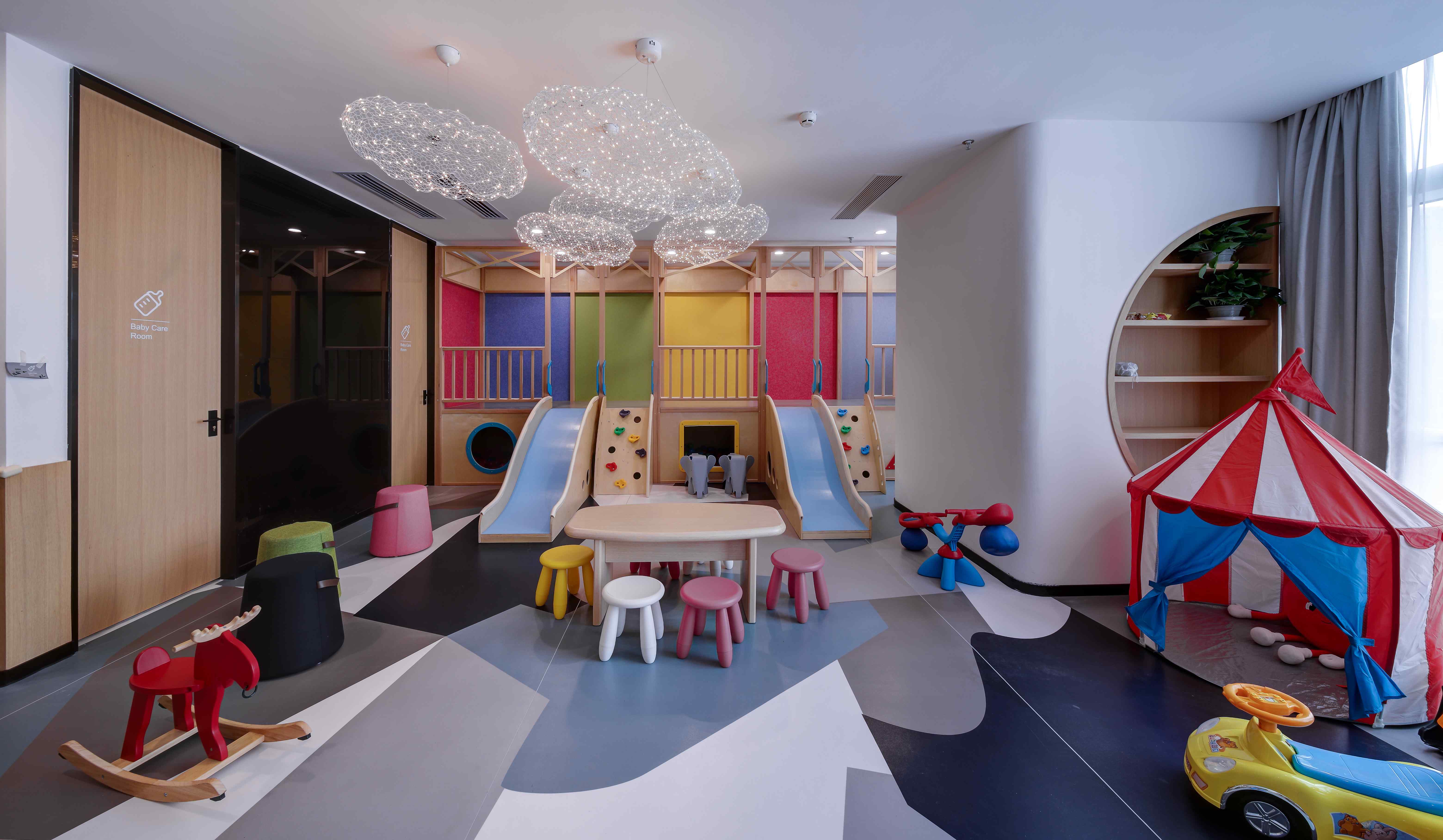 空间主色调为纯净的亮白搭配渐变的科技蓝,未来主义风格的配色带来强烈视觉惊喜。科技元素和灯光布置渲染了十足的未来感氛围,呈现出一个神秘而富含科技感的空间格调。