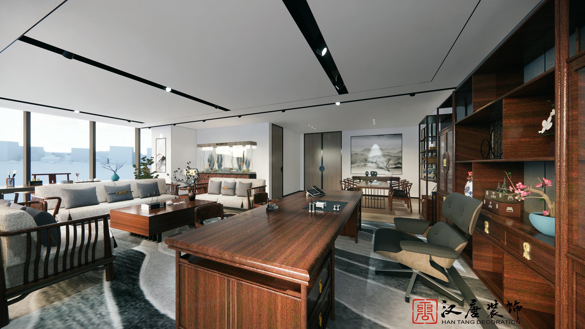 在董事长办公室与员工办公区之间形成的长方形灯带框与通透的超白玻璃充分融合,承载了使用功能的同时,也模糊了空间界限,还原了原建筑外立面绝佳的城市天际线风景。管理者与员工共同工作,合作交流更加方便。