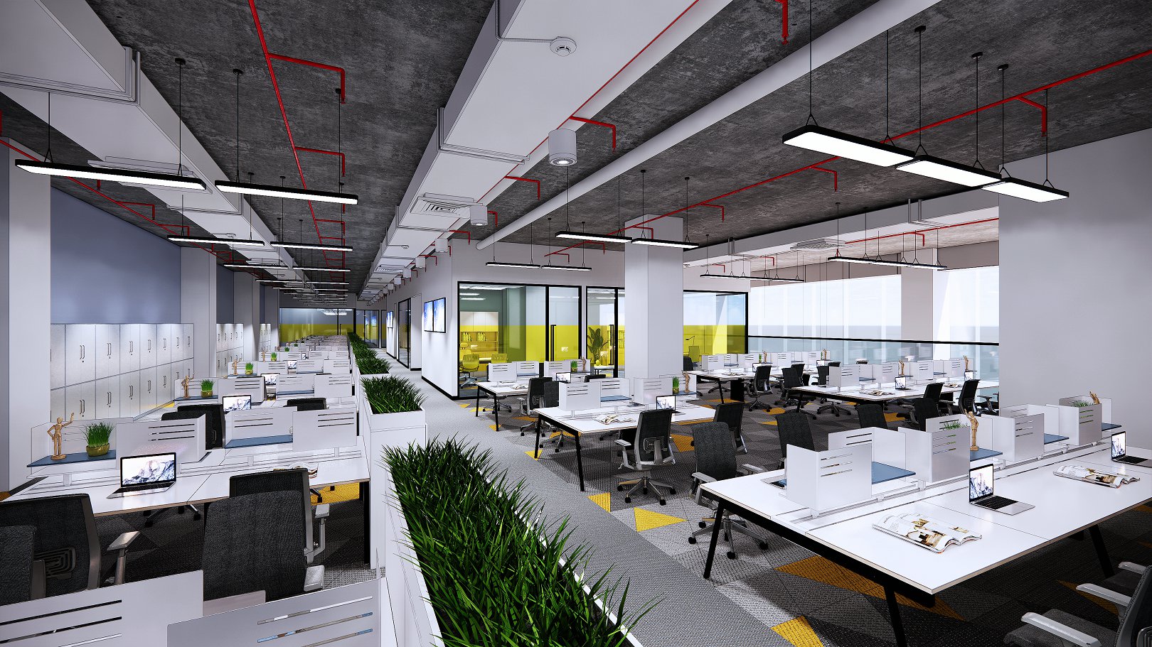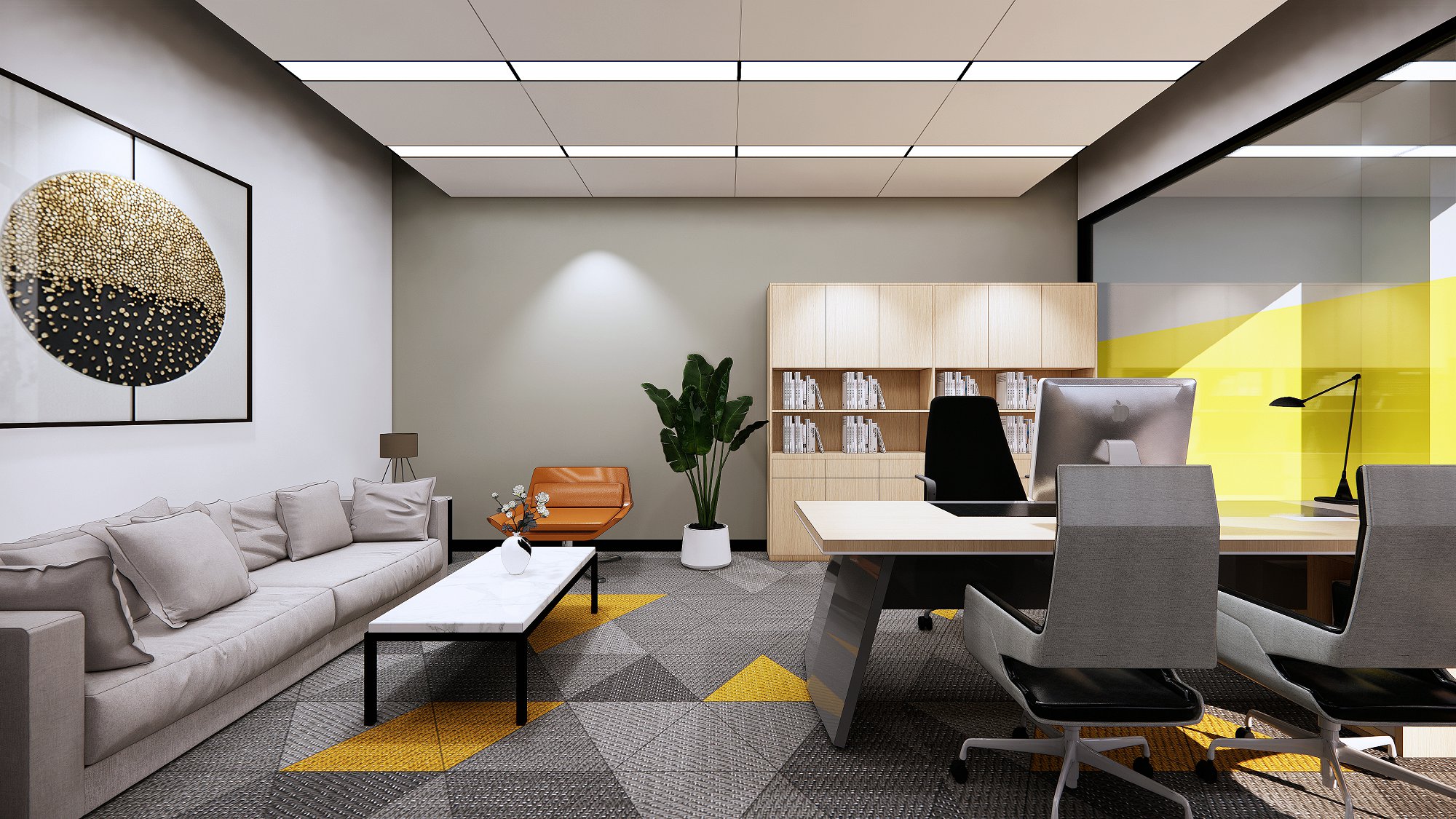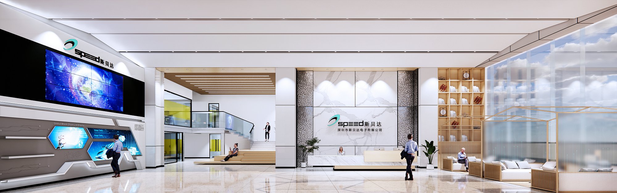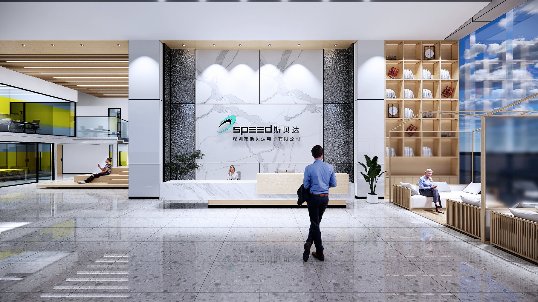 设计说明:斯贝达电子主要是从事芯片业态,公司处于高速发展期,目前新的办公室层高6.5米,设计规划布局,接待大堂做6米挑高大厅,一楼区域做研发及生产车间、物流,二楼全部用于办公空间,整体风格科技感十足,开阔大气的前厅接待区,二楼办公空间采用简约工业风,让办公空间氛围自然舒适。