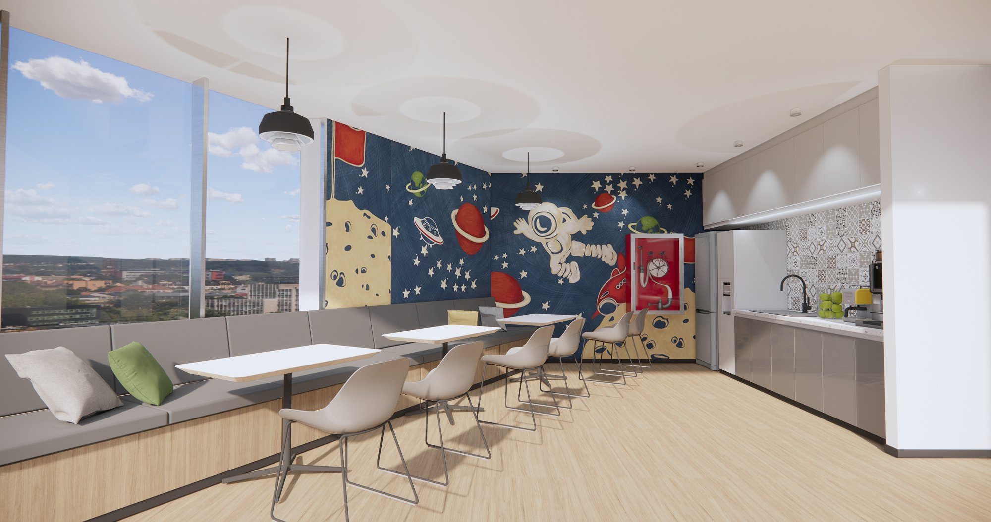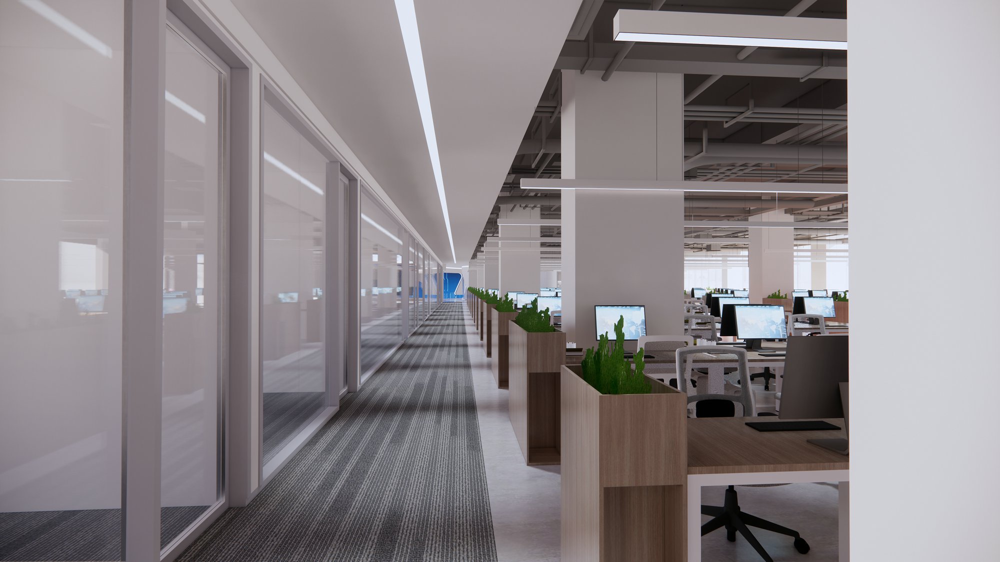项目地址:深圳市南山区科技南十二道2号金蝶软件园B座南区五楼设计说明:越来越多的客户,无论企业规模大小,都比以往更加重视自身的特色提取,他们会写出非常详细的任务书和理念关键词,而我们则在这个基础之上,希望探索每一个项目独具个性的场景特点,并能够体现其品牌的内核。 快递100专注于快递物流领域,洞察全产业链,秉承开放共享理念。致力构建中国最大的物流信息服务枢纽,以创新促进变革,以连接创造价值,助力中国企业连接全球,为中国新基建全球发展贡献力量。 公司氛围诉求体现轻松交流、年轻自由、创造性和舒适,为了构建良好而活跃的动线,同步解决大量的工位需求。我们把公共部分集中在南侧,朝向美丽的花园,让大家休息的时候可以放松眼睛;把职能关系设置在西北侧,这里有着最具吸引力的远眺景观。多点聚集的公共空间,有自助下午茶、阅读、和派对空间,是大家放松和缓冲的快乐一刻。近200人的办公环境,一定需要缓冲地带,通常叫公共配套空间。我们通过游戏、阅读、派对等这些具有生活感的功能结合,在整体清爽和富有自然光感的空间中,营造一些具有社区化氛围和放松的办公场景。