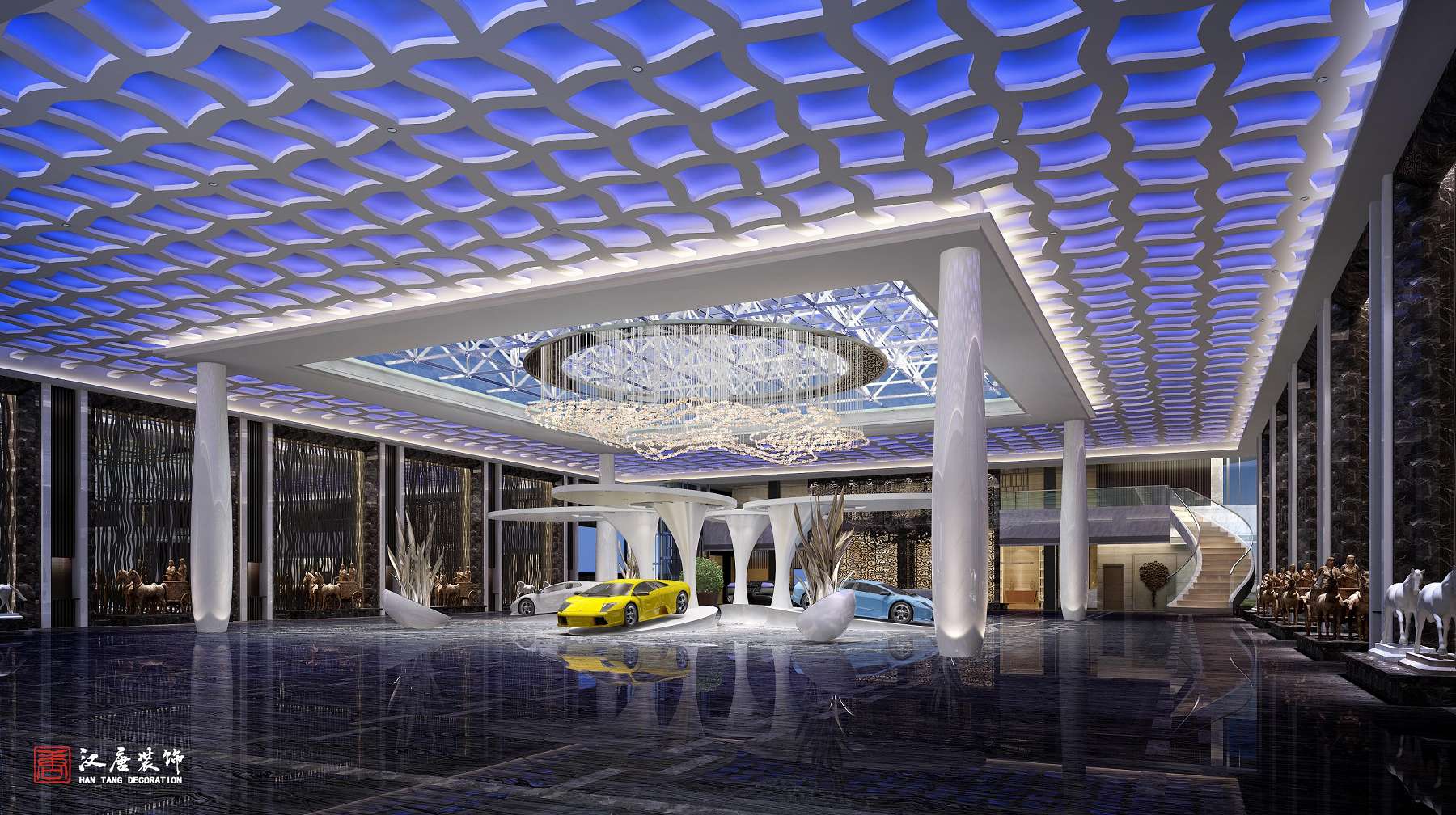 下图为项目初期对纳智捷汽车品牌的理念理解与概念植入所表达空间的渲染效果示意图,我想概念的意义不在于以单纯符合商家固有的实体店的经验积累与形式为标准,而在于提供或提出了一个机制和模式,他可以衔接并引导传统的品牌策划理念,结合实际生成可实施的并代表未来方向的关键节点。