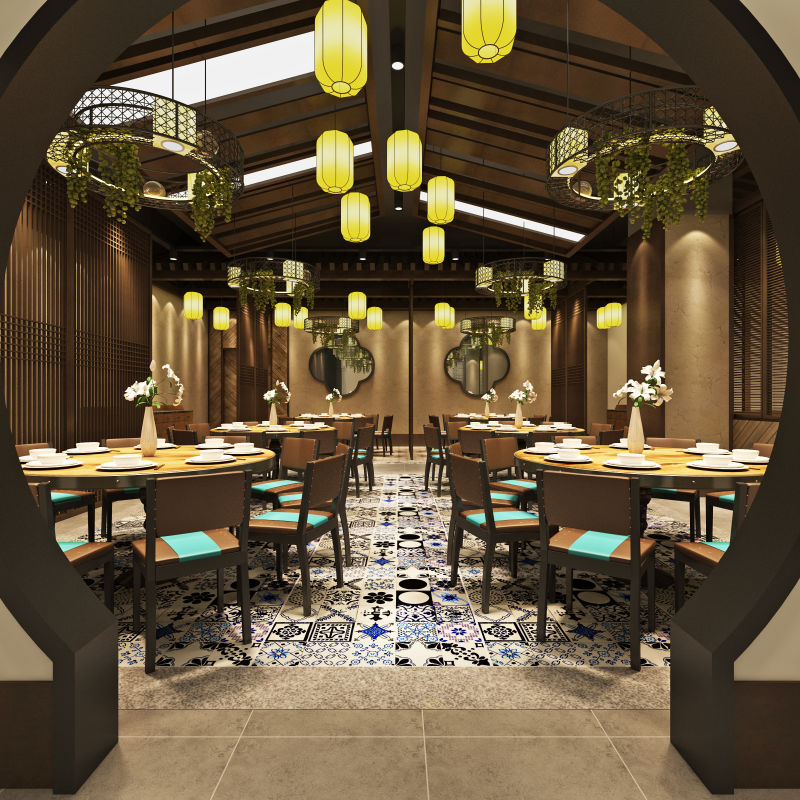 在众多餐厅的空间设计中,相信”复古怀旧”的运用是相当频繁的,我们中华名族拥有上下五千年的光辉历史文化,这一类的主题,往往都是对深厚的历史文化进行了挖掘整理之后,再现了古色古香的历史韵味,同时,也最大限度地赋予了餐厅活力,以及对大众的感染力,符合大众口味的东西才能被大众所接受。整个餐厅以个性化的风格突破了传统室内空间的制约和规范,仰望头顶,那一盏盏精美的古代宫灯,也为整个餐厅的环境营造出一份别样的雅致,给顾客带来与众不同的感受。