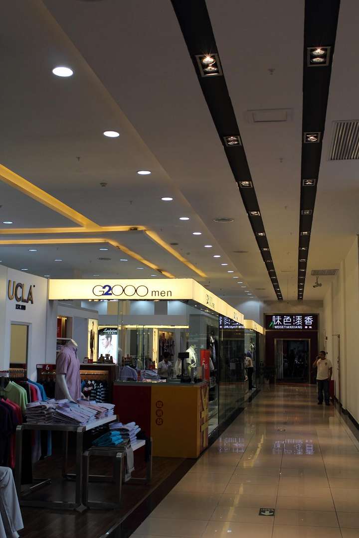空间品质及氛围主要通过材质、纹理、颜色、尺度以及接缝细节来呈现,没有复杂异形的形式。整个设计将空间、色彩、造型巧妙联系,既展示出空间的实用功能,又突出灵活多变的布局手法,创造出令人耳目一新的视觉效果。简洁的装饰语言,对称的空间布局,规范方整、功能健全,与环境形成交流,最终达成默契,突出了商场的特征。