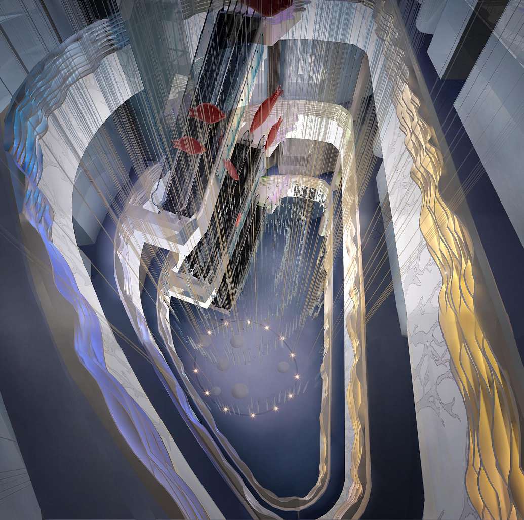 此设计突出流畅的木线条设计,高低错落,空间变化丰富有序,设计力求新颖别致,丰富了人们的视觉,充满了乐趣,通过有序的穿插,打破了原本设计的单调感,使空间变得丰富。选用同色系,但是颜色深浅不一的颜色组合,打造出具有层次感的墙面,颜色变换交错间,是让人心悦梦幻迷人系列视觉的效果,如此多的元素最终却像小溪汇入大海一般,顺服于终极的情感表达。